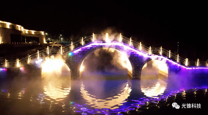 水幕電影、橋下水簾,流光溢彩、燈光璀璨-光錐又一項目順利完工